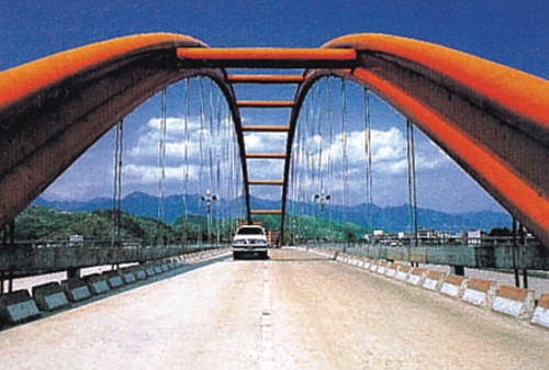 都(江堰)汶(川)高速廟子坪岷江大橋 全長1440.22米,主跨220米,預(yù)應(yīng)力砼連續(xù)鋼構(gòu)橋,2006年10月建成。