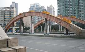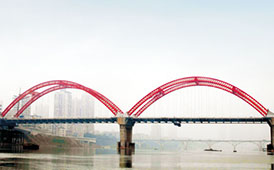 巴南高速新政嘉陵江特大橋 全橋長1036米,大橋主跨180米,墩高95米,預(yù)應(yīng)力砼連續(xù)剛構(gòu)橋,樁基作業(yè)水深達23米,2012年11月建成通車。