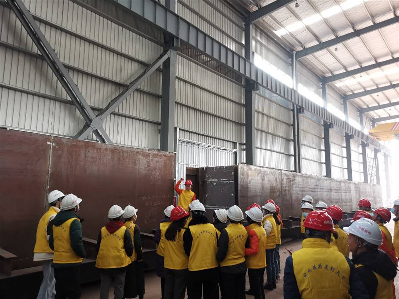全體人員首先在生產(chǎn)車間,就近期加工的金簡仁項目鋼箱梁加工、檢測、吊裝等細致交流。加工廠技術(shù)人員王瑞向大家介紹講解加工全流程情況。作為公司幾大主營下屬單位,加工廠作為大型鋼結(jié)構(gòu)加工廠家,和業(yè)務(wù)包含鋼結(jié)構(gòu)檢測的檢測公司,以及設(shè)備管理的機具站,活動人員借此機會不斷提問、交流、分享。