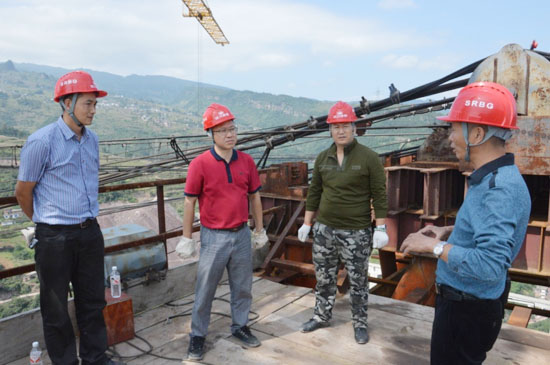 蔡董事長(zhǎng)與管理人員交流預(yù)制梁安裝、索塔拆除等方案