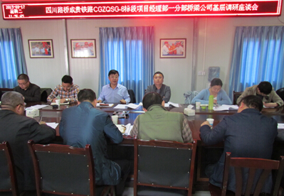 隨后,劉書記召集分部全體職工在分部會(huì)議室進(jìn)行了基層調(diào)研座談會(huì)。分部經(jīng)理張捷、支部書記劉永富、副經(jīng)理唐正國(guó)、總工王鋒對(duì)各自分管的工作進(jìn)行了簡(jiǎn)要匯報(bào)。各部門負(fù)責(zé)人及工區(qū)長(zhǎng)也在座談會(huì)上積極發(fā)言,提出了很好的建議和想法。團(tuán)委書記陳利麗希望我部搞好團(tuán)隊(duì)建設(shè)和導(dǎo)師帶徒等多項(xiàng)活動(dòng),做好宣傳報(bào)道工作,發(fā)揮更多的青春正能量,促進(jìn)項(xiàng)目的生產(chǎn)。面對(duì)2015年繁重的產(chǎn)值目標(biāo)任務(wù),胡總在會(huì)上提出了七點(diǎn)要求:一是統(tǒng)一思想,認(rèn)清形勢(shì),明確目標(biāo),全力完成產(chǎn)值任務(wù);二是加大考核力度,制定相應(yīng)的考核辦法,積極參加項(xiàng)目部?jī)蓚€(gè)“大干100天”勞動(dòng)競(jìng)賽活動(dòng);三是強(qiáng)化現(xiàn)場(chǎng)管理,確保安全質(zhì)量可控,特別是隧道施工管理;四是加大項(xiàng)目執(zhí)行力度,做好成本過程控制;五是繼續(xù)加大征拆工作力度;六是加強(qiáng)團(tuán)結(jié),凝心聚力,帶好團(tuán)隊(duì),培養(yǎng)人才;七是加強(qiáng)協(xié)作隊(duì)伍管理和民工工資發(fā)放。