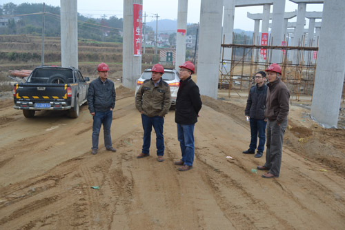 2014年12月10日,橋梁公司董事長蔡樂軍一行前往工地。對23公里施工線路內(nèi)的路基、橋梁施工情況進行了全面檢查,對照業(yè)主下發(fā)的節(jié)點目標任務要求,在逐一聽取分部對每一個作業(yè)點的工作安排和匯報后,提出指導意見。