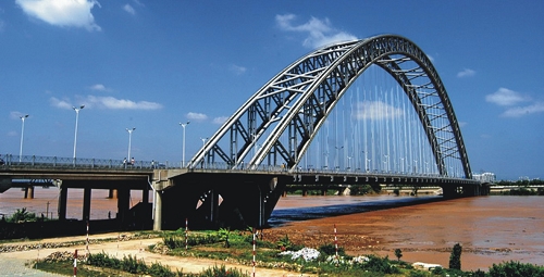 廣西南寧永和大橋 全長1402.15米,主跨338米,單跨下承式鋼管砼變高度桁式有推力無鉸拱橋,2004年10月建成通車。共46個吊裝節(jié)段,單節(jié)段最大吊重121.8噸,公司承擔(dān)吊裝工程。