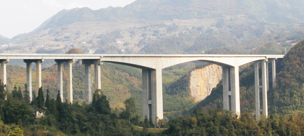 主跨200米,墩高135米,預(yù)應(yīng)力砼連續(xù)剛構(gòu)橋,2012年10月建成通車。