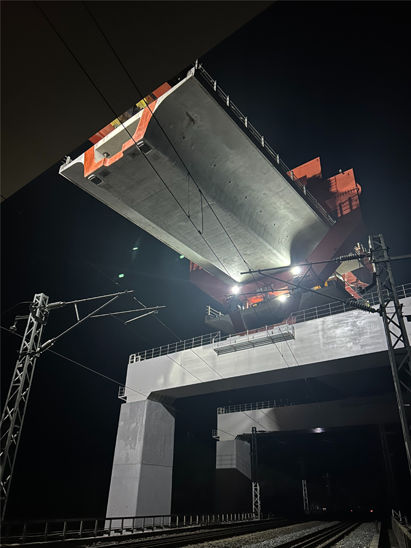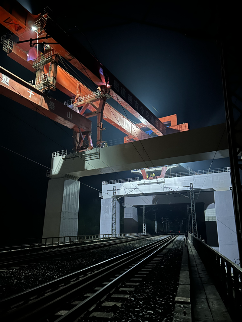 攻堅(jiān)克難勇向前,全力奏響最高潮。隨著前期安排的計(jì)劃推進(jìn),開(kāi)始正式的施工架設(shè),架設(shè)現(xiàn)場(chǎng)采取定人定崗、五級(jí)防護(hù)措施,全力保障施工安全,為保證施工準(zhǔn)時(shí)進(jìn)行,每天提前12個(gè)小時(shí)將箱梁運(yùn)到現(xiàn)場(chǎng),規(guī)避突發(fā)狀況。同時(shí),項(xiàng)目也堅(jiān)持黨建引領(lǐng),組織成立青年先鋒隊(duì),陪同施工人員一起徹夜作戰(zhàn),為每一位奮斗在一線的工作人員提供充足的后勤保障。饒家墻跨蘭渝鐵路特大橋箱梁架設(shè)的營(yíng)業(yè)線二級(jí)施工是漢巴南鐵路架梁鋪軌線上最重要、也是最后一個(gè)工期卡控點(diǎn)工程,強(qiáng)調(diào)營(yíng)業(yè)線施工的專業(yè)性,各個(gè)區(qū)間工段的配合難度較大、涉及的各方面因素比較復(fù)雜,對(duì)施工人員的工作要求也比較嚴(yán)格。所有施工人員在克服暴雨等惡劣天氣影響的同時(shí),還要克服凌晨徹夜施工的身體疲勞,正是因?yàn)槊恳晃粖^斗在一線的工作人員辛勤付出,讓此次跨蘭渝鐵路特大橋箱梁架設(shè)二級(jí)施工將原方案的17個(gè)天窗調(diào)減至9個(gè),最后又優(yōu)化到5個(gè)天窗,大幅減少施工資源投入和對(duì)社會(huì)公共資源的占用。