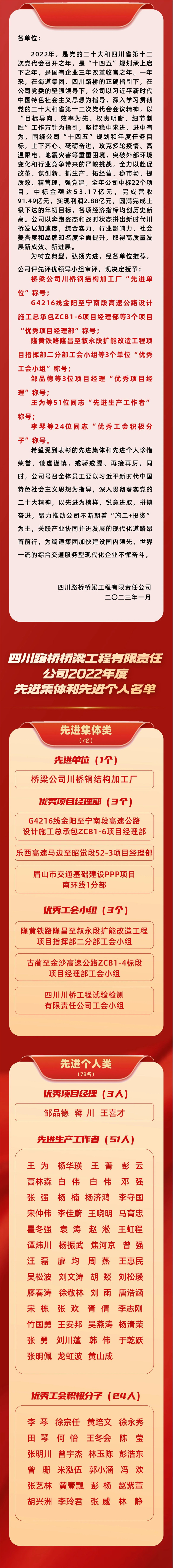 橋梁公司2022年度先進(jìn)集體和先進(jìn)個(gè)人光榮榜