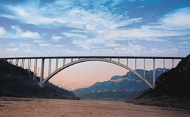 重慶巫山長江大橋 全長612.2米,主跨460米,中承式鋼管砼拱橋,主跨居同期同類橋梁世界第一,創(chuàng)下組合跨徑、每節(jié)段纜索吊裝重量、吊塔距離、拱圈管道直徑和吊裝高度5項(xiàng)世界第一,名列“世界百座...