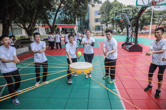 “核彈危機(jī)”、“細(xì)水長(zhǎng)流”、“擊鼓顛球”、“七巧板”、“飛盤(pán)運(yùn)動(dòng)”5個(gè)極具挑戰(zhàn)性的項(xiàng)目,在教練的解說(shuō)下,各組隊(duì)員之間開(kāi)始分工配合、通力合作,你拉我一把、我推你一掌,各小隊(duì)之間也是鉚足了力、憋足了勁,你追我趕,相互競(jìng)進(jìn),只爭(zhēng)第一。