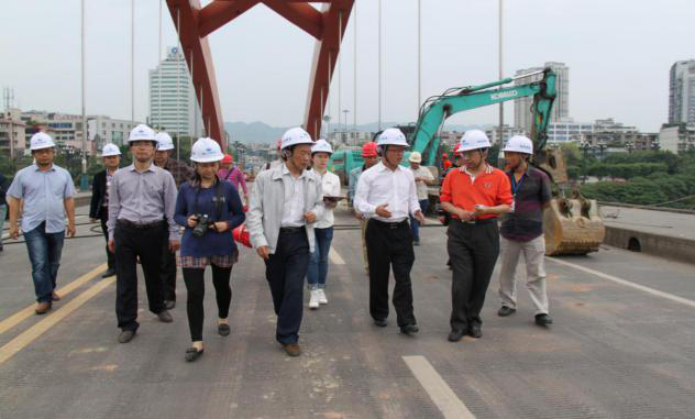 4月28日上午,宜賓市副市長李學(xué)焦帶領(lǐng)市交通運輸局、公路局等相關(guān)單位負責人蒞臨宜賓市南門大橋加固維修改造工程施工現(xiàn)場視察指導(dǎo)工作。
