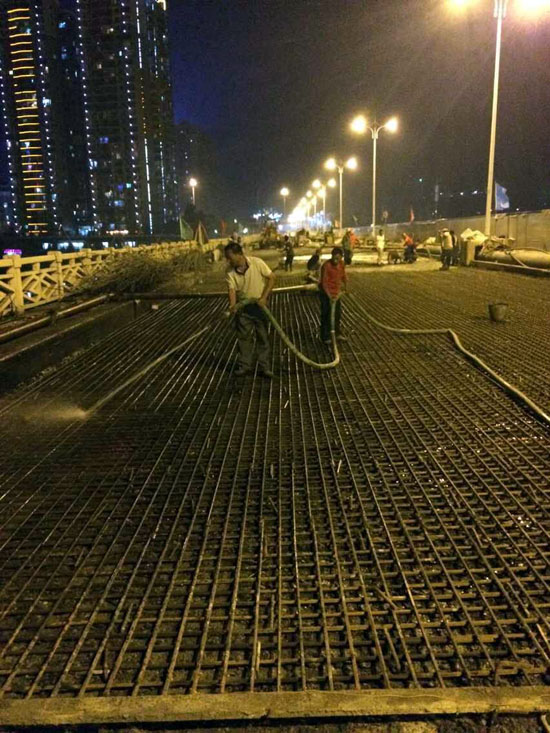 在特種工程分公司的統(tǒng)籌安排下,合川涪江二橋病害整治工程項(xiàng)目部在9月初組織開展了“穩(wěn)增長(zhǎng)、促發(fā)展、確保完成年度生產(chǎn)任務(wù)”的勞動(dòng)競(jìng)賽生產(chǎn)活動(dòng),進(jìn)一步細(xì)化工作,落實(shí)任務(wù),爭(zhēng)分奪秒搶工期,抓質(zhì)量、保安全,于9月30日按時(shí)完成了右幅橋面鋪裝。