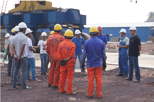 為做好第一榀箱梁的提梁脫模,分部領(lǐng)導(dǎo)班子成員作了緊密部署和精心安排。組織員工召開安全技術(shù)交底會,針對900噸提梁機作業(yè)流程、操作要領(lǐng)、安全注意事項做了詳細(xì)的交底。劃分責(zé)任區(qū),落實到人,嚴(yán)格控制各個工序質(zhì)量,遇到問題,及時解決,確保提梁機運行環(huán)境安全。每一個細(xì)節(jié)、每一個方案領(lǐng)導(dǎo)班子都親自把關(guān),最終順利完成首次提梁工作。
