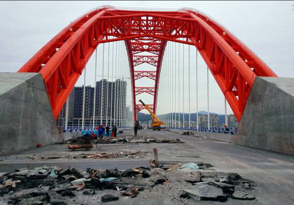 蒼溪縣嘉陵江三橋作為我公司第一個(gè)BT項(xiàng)目工程,為橋梁公司創(chuàng)新發(fā)展帶來(lái)新的機(jī)遇及理念。下承式鋼管混凝土系桿拱橋,對(duì)支承系統(tǒng)、主拱肋拱軸線控制系統(tǒng)、鋼管混凝土配制、主拱肋鋼管的拼裝等施工工藝都有特殊的要求,因此技術(shù)復(fù)雜,施工難度大。從2013年1月開(kāi)工至今天,23個(gè)月的日日夜夜跨越兩個(gè)漫長(zhǎng)的酷暑,回想在施工過(guò)程中遇到的各種困難,全體員工無(wú)不感慨萬(wàn)千。蒼溪縣嘉陵江三橋取得今天的勝利是項(xiàng)目部全體員工共同努力、迎難而上的結(jié)果,更是“川橋”兒女齊心協(xié)力、堅(jiān)強(qiáng)毅力的見(jiàn)證,相信在我們辛勤的付出之后蒼溪縣嘉陵江三橋最終定會(huì)收獲成功的果實(shí),為蒼溪人民交一份滿(mǎn)意的答卷。