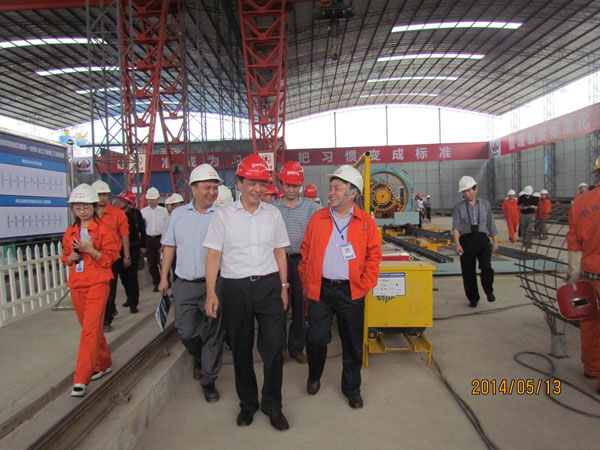 2014年5月13日中午1點(diǎn)30分,成都鐵路局副局長、成貴鐵路公司董事長張國力帶領(lǐng)成貴鐵路全線觀摩團(tuán)隊到我部觀摩標(biāo)準(zhǔn)化鋼筋加工場。